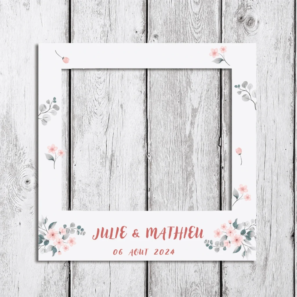 Cadres photo adaptés aux couleurs et au thème de votre événement pour une expérience unique.